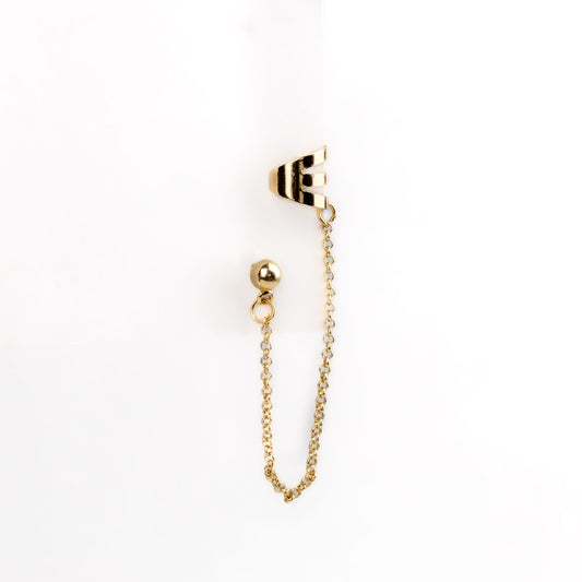 Cercel ear cuff cu lănțișor și cercel cu biluță - Auriu