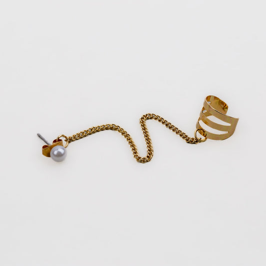 Cercel ear cuff cu lănțișor și cercel cu perlă mică - Auriu