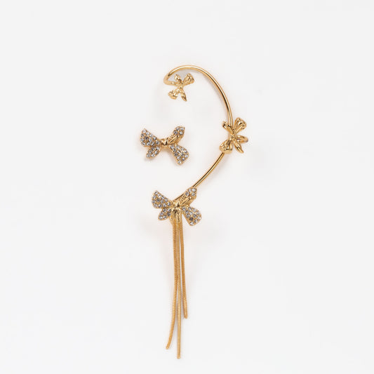 Cercel ear cuff cu lanțuri fine și fundițe, set 2 buc - Auriu magic