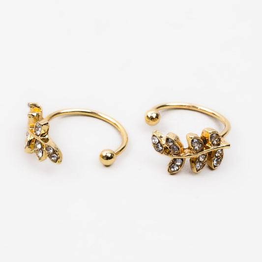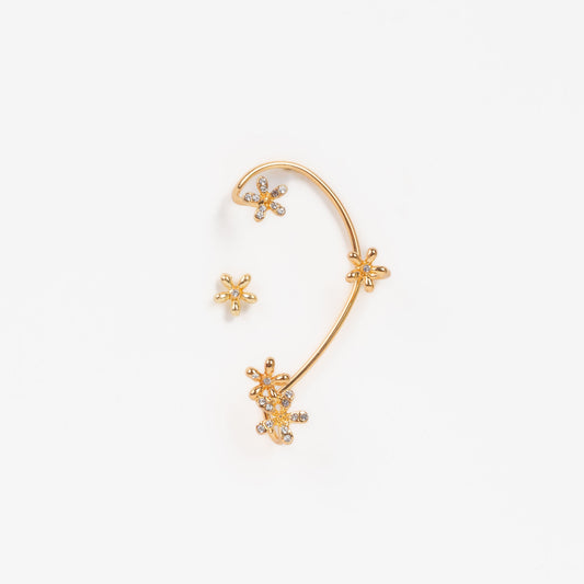 Cercel ear cuff cu ornamente în formă de floare, set 2 buc - Auriu delicat