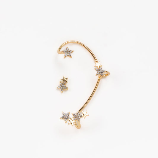 Cercel ear cuff cu ornamente în formă de stea, set 2 buc - Auriu cosmic