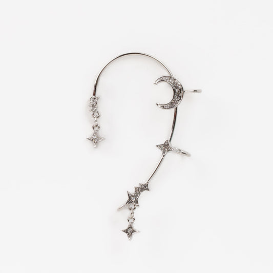 Cercel ear cuff cu ornamente stea și lună - Argintiu stelar