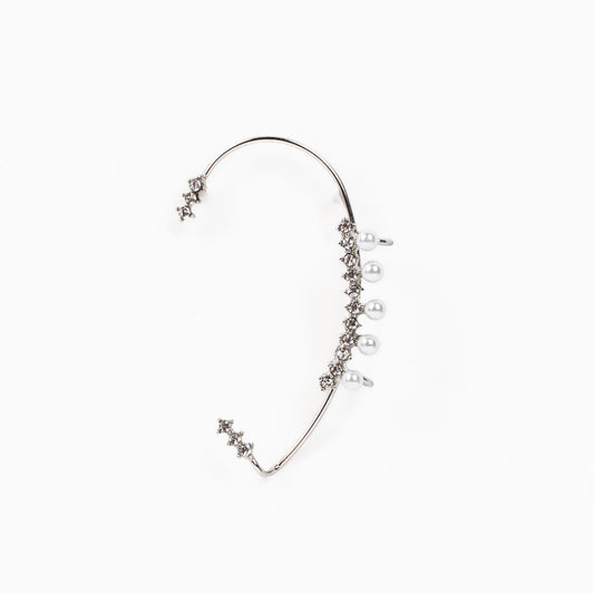 Cercel ear cuff cu perle fine și ștrasuri - Argintiu stelar