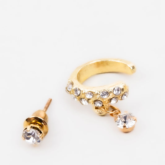 Cercel și ornament de ureche cu ștrasuri discrete, set 2 buc - Auriu elegant
