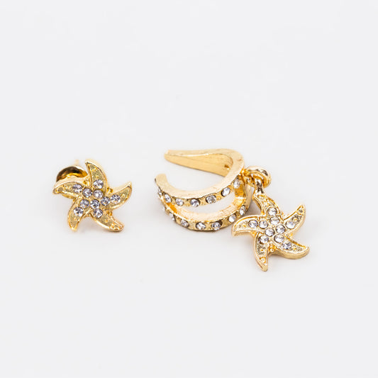 Ornament de ureche și cercel cu pandantiv stea de mare, set 2 buc - Auriu magic