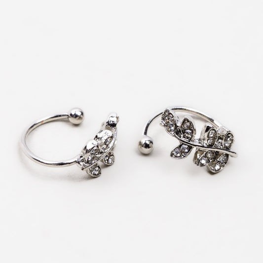 Ornamente de ureche în formă de frunză cu ștrasuri discrete, set 2 buc - Argintiu magic