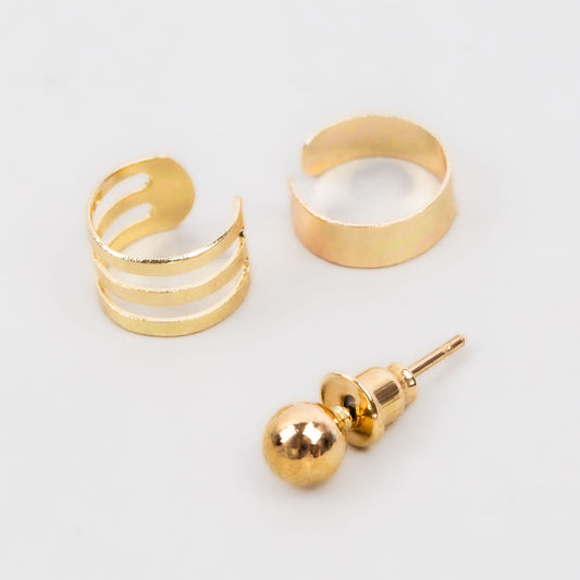 Ornamente de ureche și cercel cu perlă mică, set 3 buc - Auriu discret