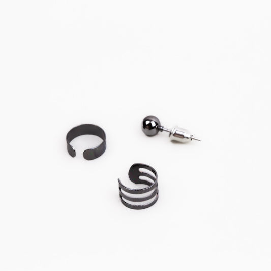 Ornamente de ureche și cercel cu perlă mică, set 3 buc - Gri Antracit