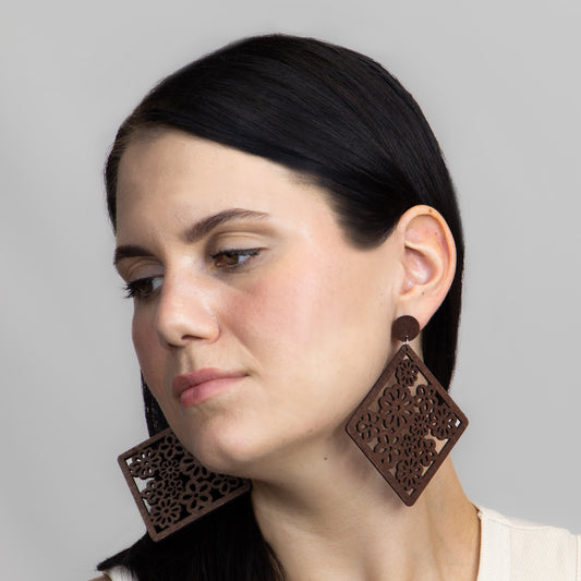 Cercei floral drop ușori din lemn - Maro Închis
