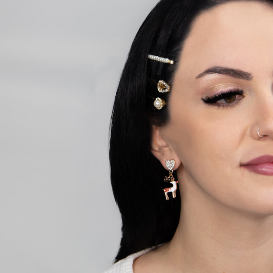 Set cercei cu motive de Crăciun, Merry Trio, 3 perechi - Roșu, Auriu
