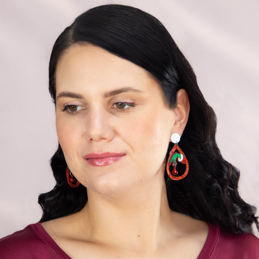 Set cercei cu motive de Crăciun Holiday Giggles, 2 perechi - Roșu
