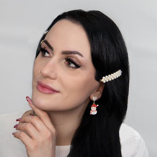 Set cercei cu motive de Crăciun Frosty Friends, 2 perechi - Alb, Roșu