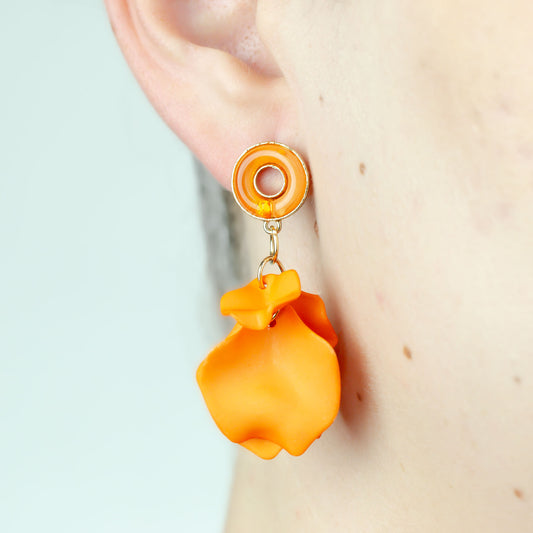 Cercei foarte faini cu petale mari siliconate și accent auriu - Portocaliu