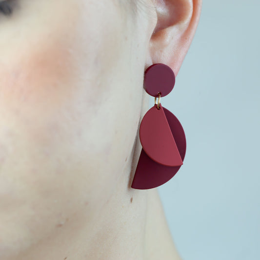 Cercei lungi în formă de frunză geometrică siliconata - Bordo