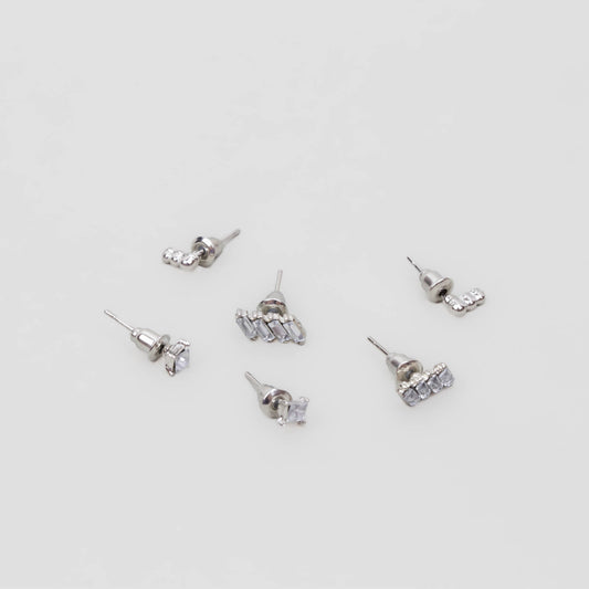Cercei mici argintii cu pietre și biluțe discrete, set 3 buc