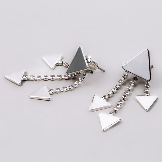 Cercei cu forme de triunghi și ștrasuri - Argintiu