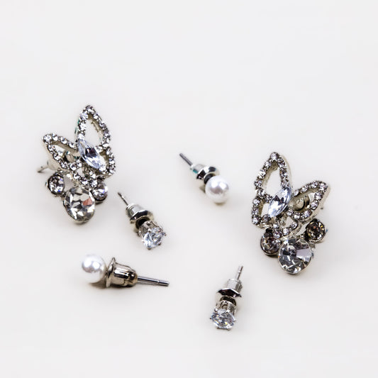 Set cercei cu fluture și pietre strălucitoare, 3 perechi - Argintiu