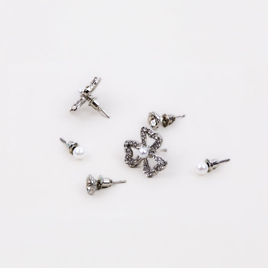 Set cercei cu forme de floare și pietre strălucitoare, 3 perechi - Argintiu