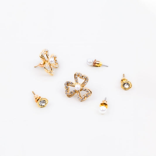 Set cercei cu forme de floare și pietre strălucitoare, 3 perechi - Auriu