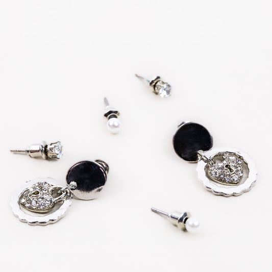 Set cercei cu pandantiv în formă de inimă și pietre, 3 perechi - Argintiu