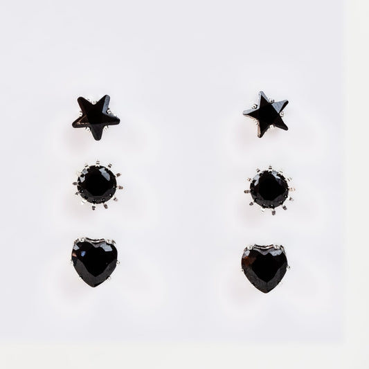 Set cercei mici cu pietre stralucitoare steaua nordului, 3 perechi - Negru