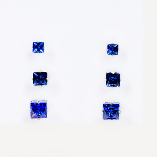 Set cercei mici cu pietre pătrate, 3 perechi - Albastru