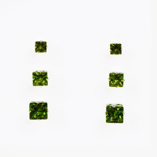 Set cercei mici cu pietre pătrate, 3 perechi - Verde