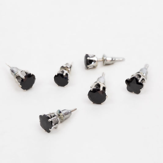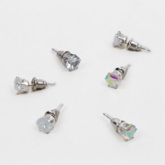 Set cercei mici cu pietre strălucitoare rotunde, 5-7mm, 3 perechi - Argintiu, baza argintiu