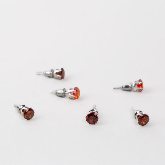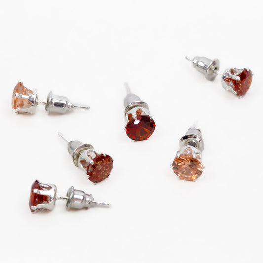 Set cercei mici cu pietre rotunde în nuanțe, 3 perechi - Roșu Mix