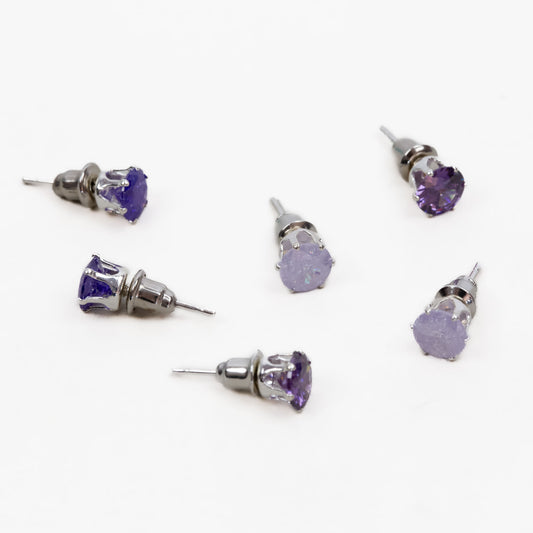 Set cercei mici cu pietre rotunde în nuanțe, 3 perechi - Mov