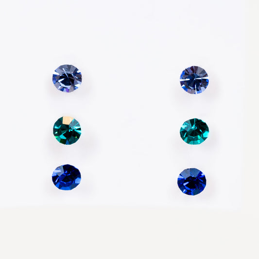 Set cercei mici cu pietre strălucitoare în nuanțe, 3 perechi - Albastru Mix