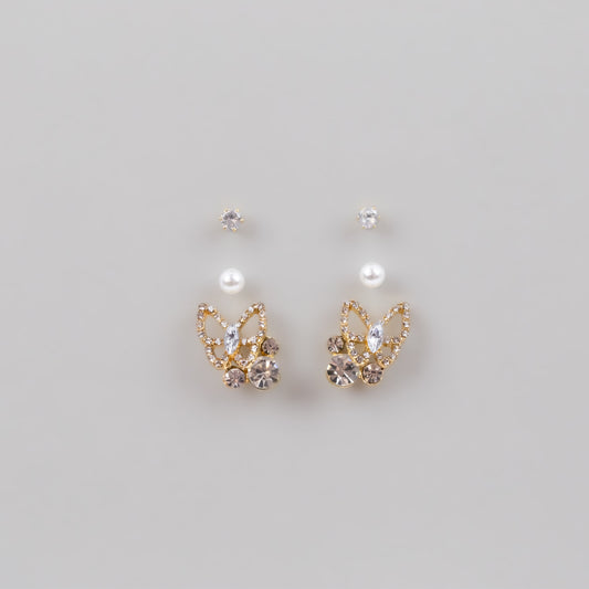 Set cercei cu fluture și pietre strălucitoare, 3 perechi - Auriu