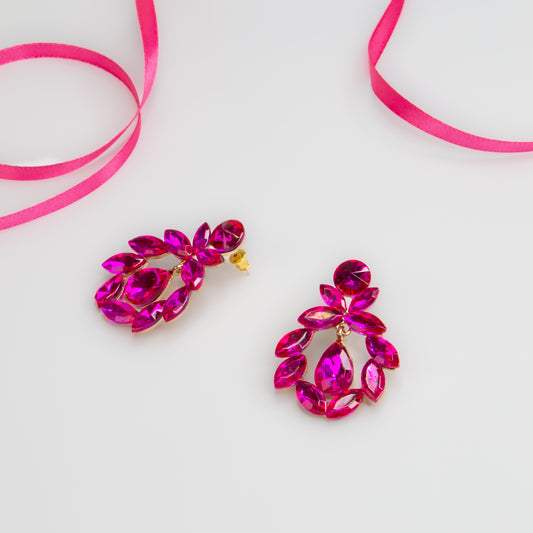 Cercei eleganți cu pietre strălucitoare, Coroana Imperială - Magenta