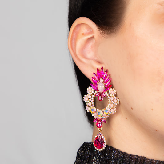 Cercei eleganți cu pietre mari, Crystal Heaven - Roz