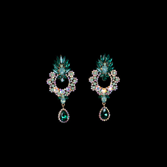 Cercei mari eleganți cu pietre deosebite, Păun Imperial - Verde