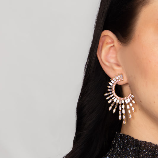 Cercei mari eleganți cu pietre rafinate, Solaris - Auriu Rose