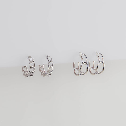 Cercei rotunzi chain elegance, set 2 - Argintiu