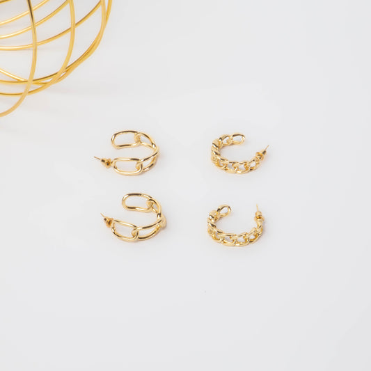 Cercei rotunzi chain elegance, set 2 - Auriu