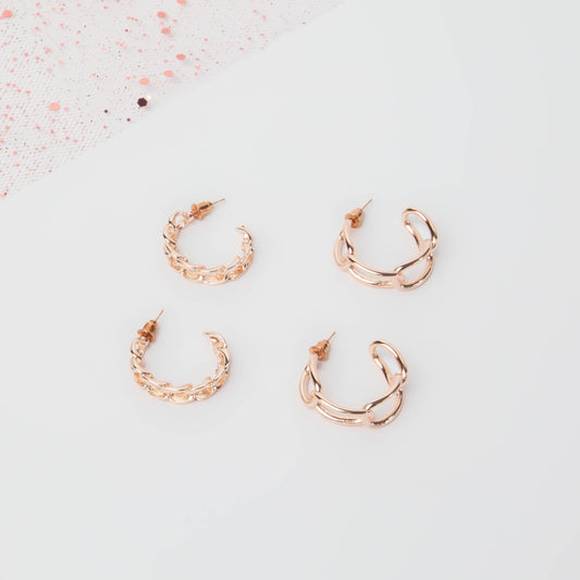 Cercei rotunzi chain elegance, set 2 - Rose Gold