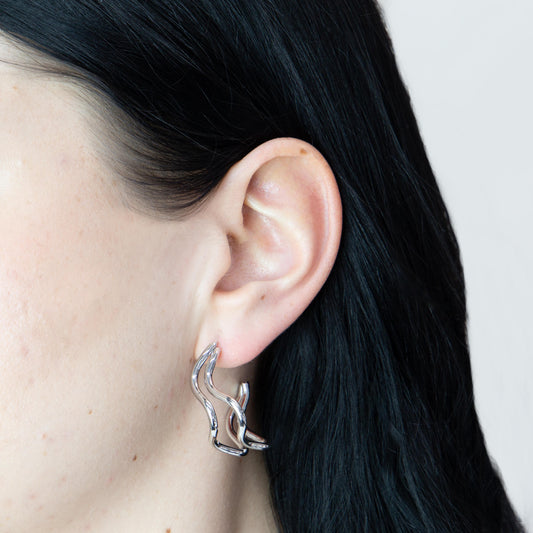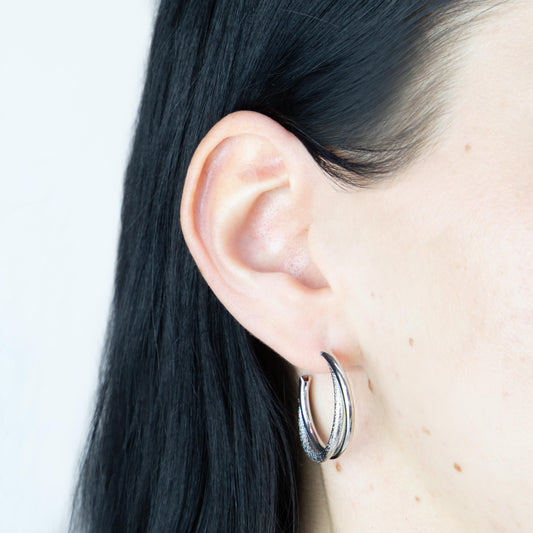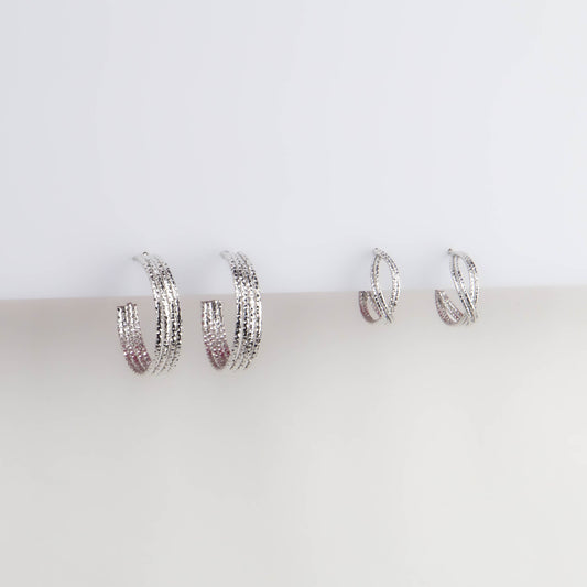 Cercei rotunzi twister chic, set 2 - Argintiu