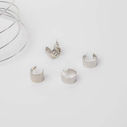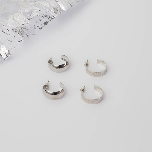 Cercei rotunzi lați texturați, set 2 - Argintiu