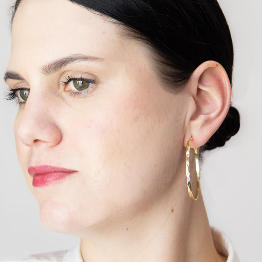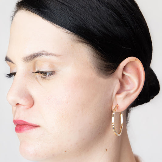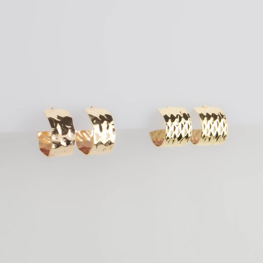 Cercei rotunzi lați texturați, set 2 - Auriu