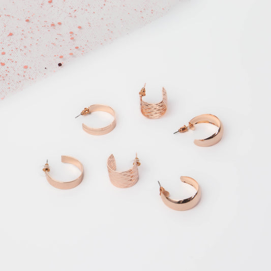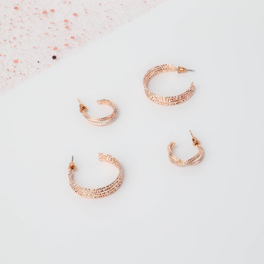 Cercei rotunzi texturați chic, set 2 - Rose Gold