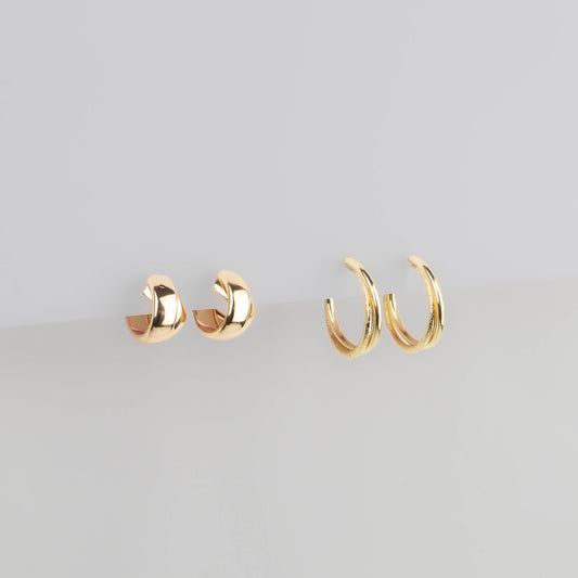 Cercei rotunzi minimal chic, set 2 - Auriu