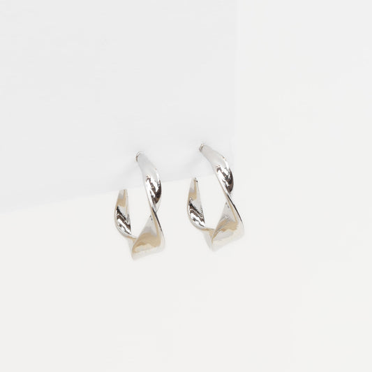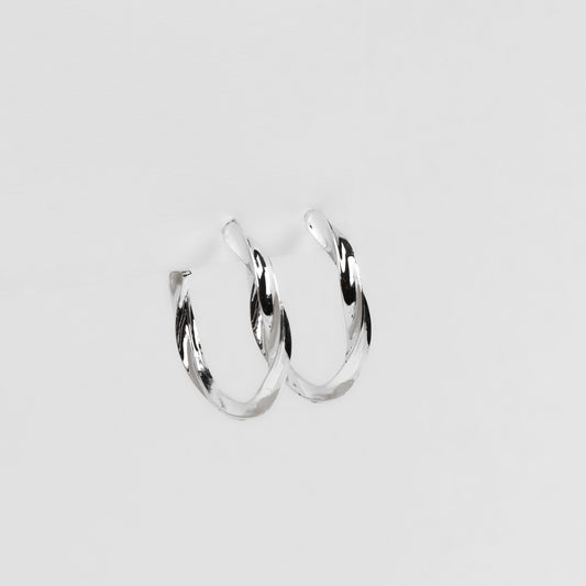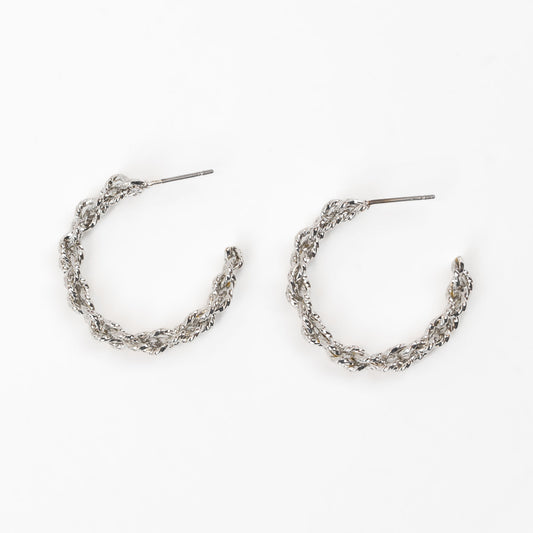 Cercei rotunzi mici lați cu formă împletită - Argintiu elegant