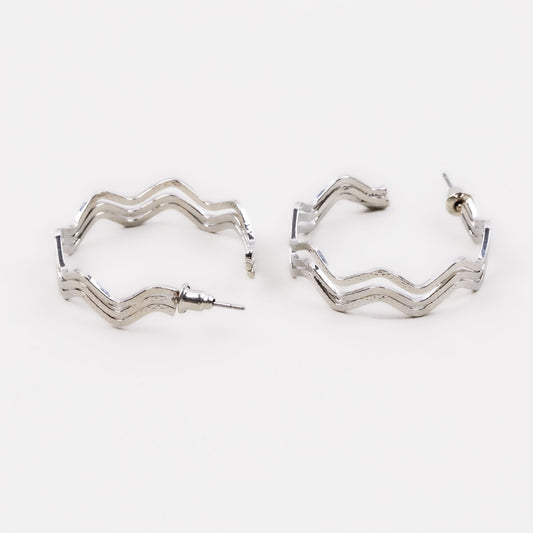 Cercei verigă lați cu formă abstractă - Argintiu galactic