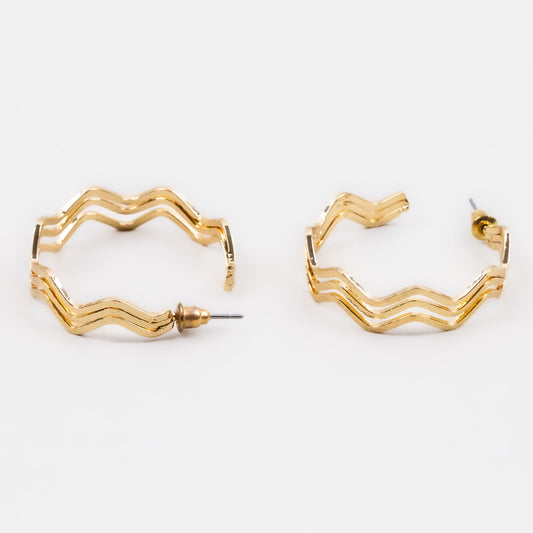 Cercei rotunzi dubli cu textură crestată - Auriu