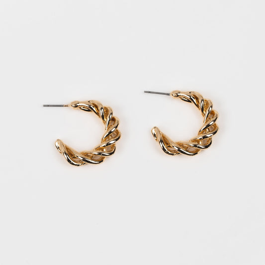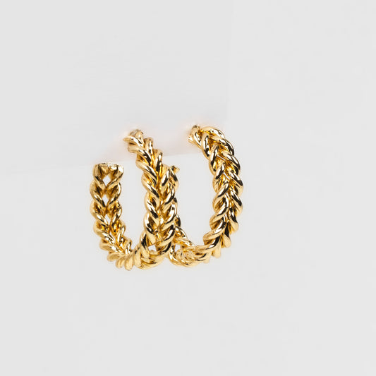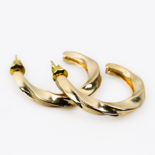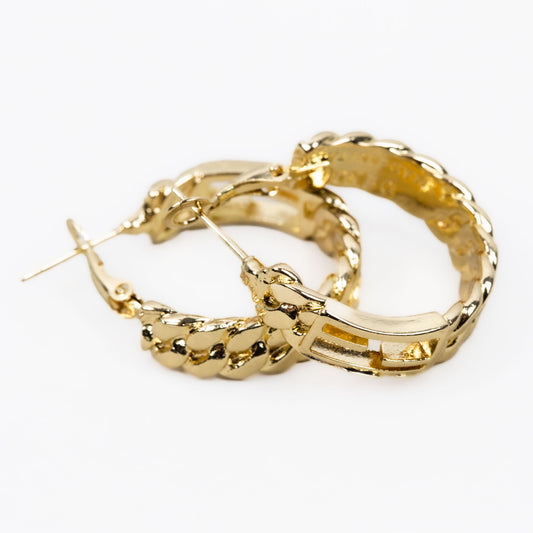 Cercei rotunzi mici lați cu formă împletită - Auriu elegant