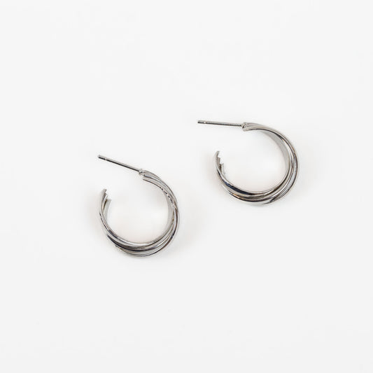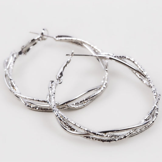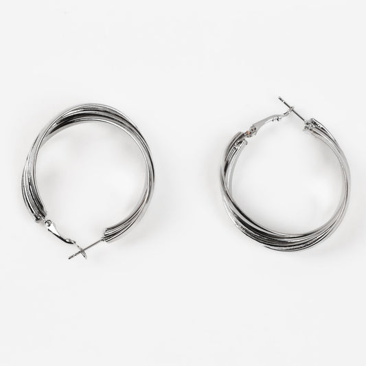Cercei rotunzi texturați în 3 straturi împletite - Argintiu