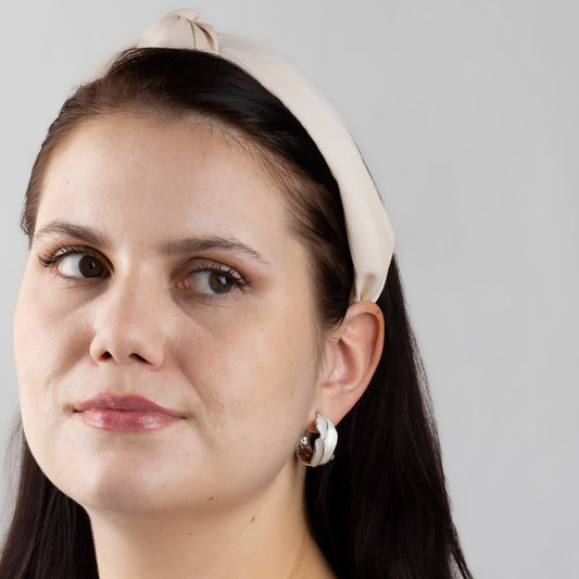 Cercei rotunzi lați cu suprafața fină în alb caramelizat - Argintiu
